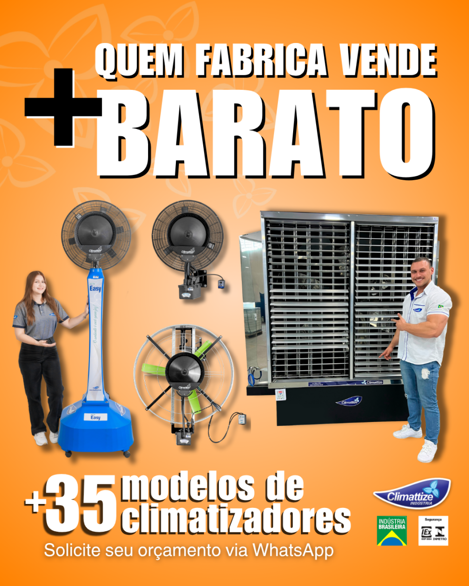 Temos mais de 35 modelos diferentes de climatizadores Aspersivos, Evaporativos e Exaustores, para solucionar os problemas de climatização da sua empresa. As melhores soluções em climatizadores e exaustores para todos os ambientes você encontra aqui.